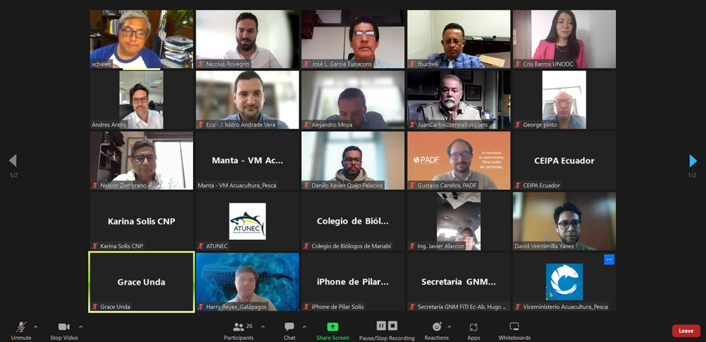El martes 3 de octubre de 2023, se llevó a cabo de manera virtual la cuarta reunión del Grupo Nacional Multiactor (GNM) de FiTI Ecuador, presidida por el Viceministro de Acuacultura y Pesca, Abg. Andrés Arens, en su calidad de Presidente del GNM, con la participación de representantes del sector público, el sector pesquero y la sociedad civil.